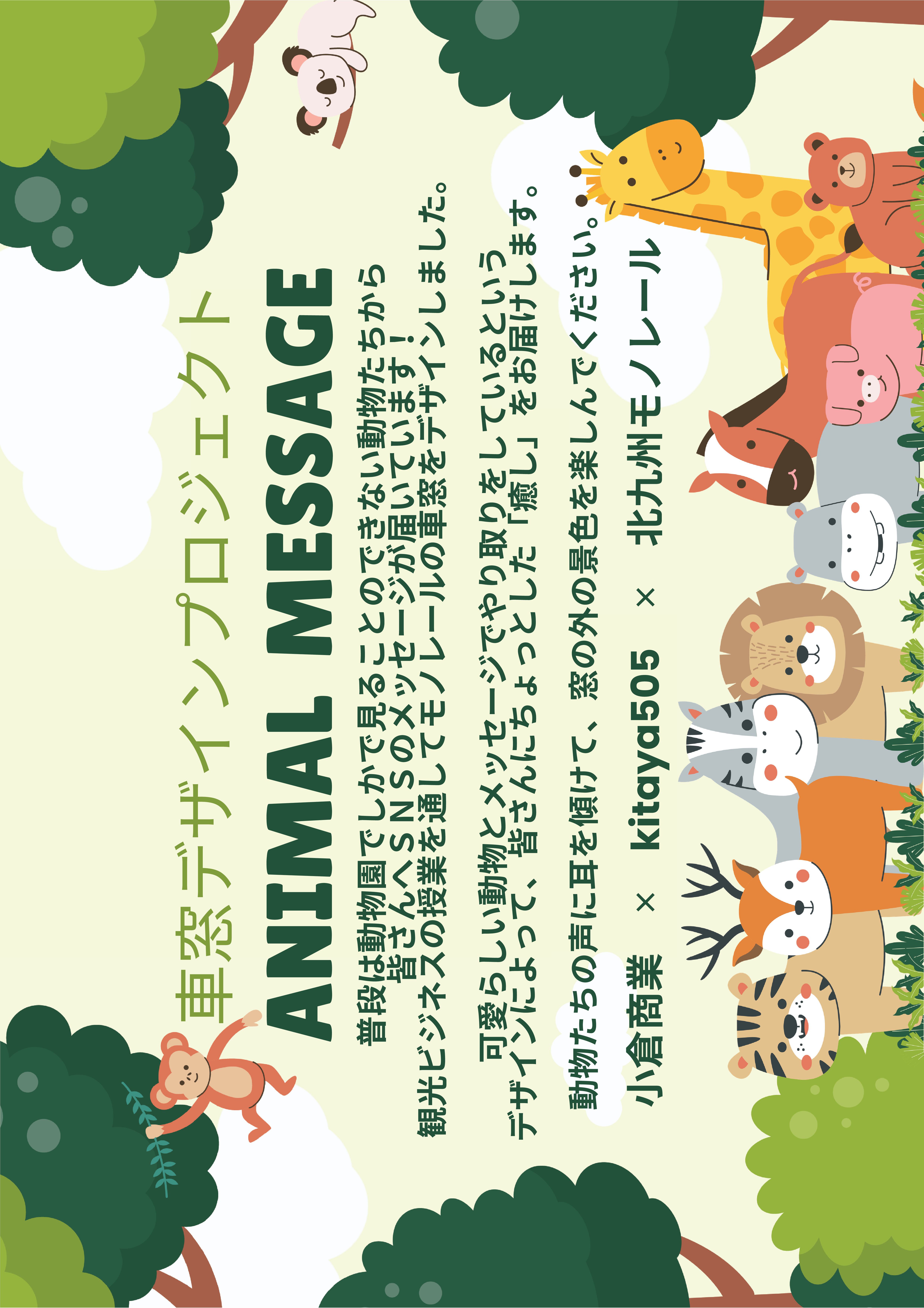 小倉商業高校、kitaya505、北九州モノレールの産学連携プロジェクトとして「車窓デザインプロジェクト2026」を実施いたしました。 「車窓デザインプロジェクト」とは、モノレールの車窓をステッカーでデコレーションし、お客様に新たな景色をお楽しみいただく取り組みです。 このプロジェクトはkitaya505様のご協力により、2025年から実施しており、今年は『癒し』をテーマにお届けいたします。 小倉商業高校(観光ビジネス科2年生)の生徒たちの想いが詰まった作品を是非ご覧ください。 運行期間:2026年3月末~9月末